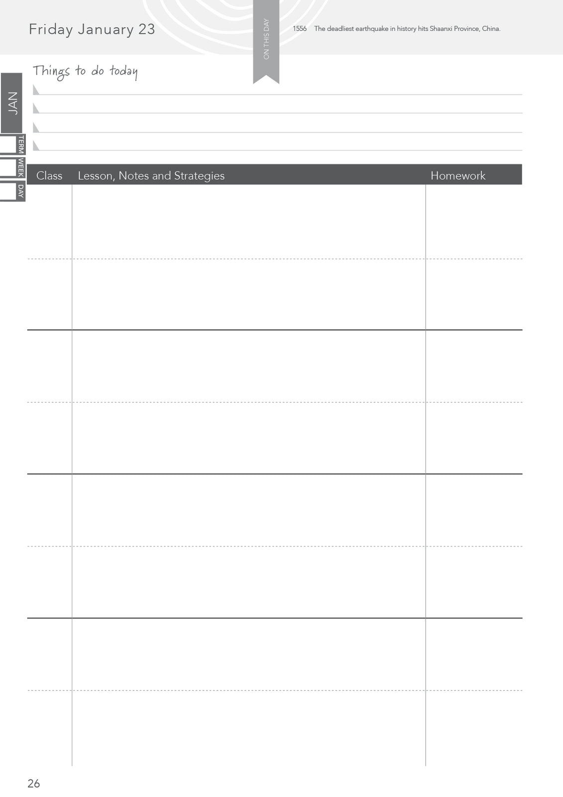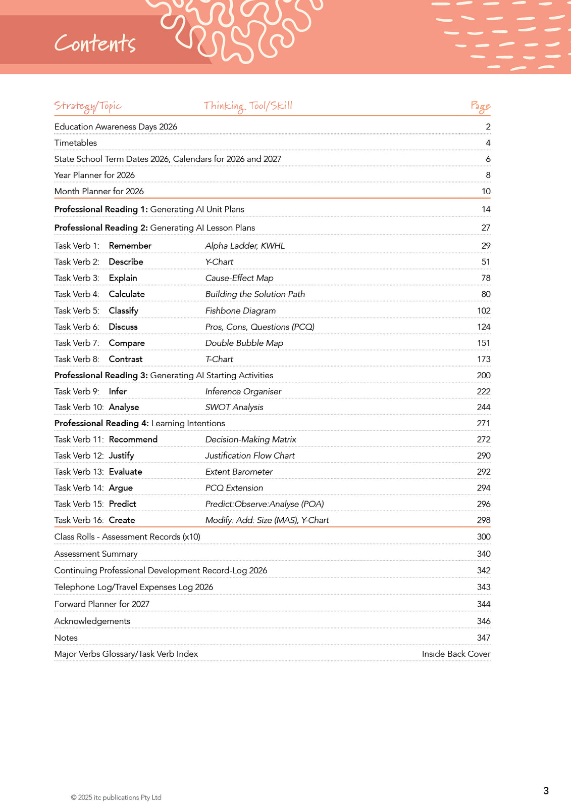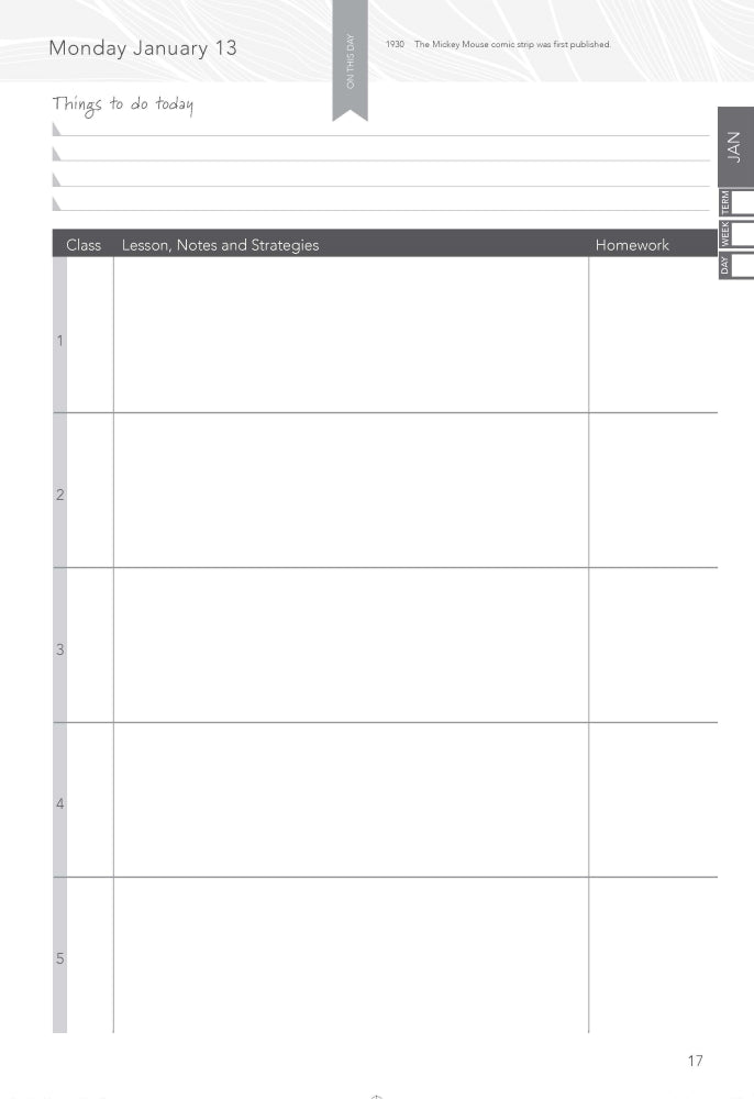 The Innovative Teachers' Companion Secondary Years Edition (7-12) is your teachers' diary to assist you with your daily, monthly and yearly planning with the following additional features: