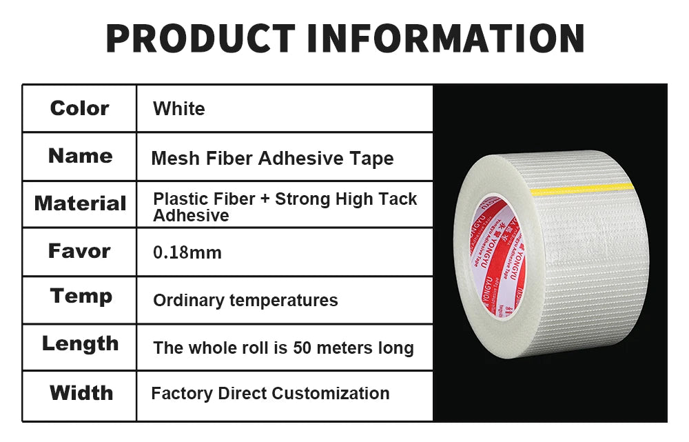 Fiberglass tape is easily to most surfaces including glass, polished wood, plastic, metal, fiberboard, cardboard etc. Extremely strong and durable for high-stress jobs in industrial or commercial applications. Provides a tight hold on packaging, shipping, moving, and large warehouse storage items and cartons Also.